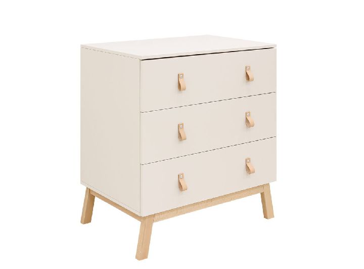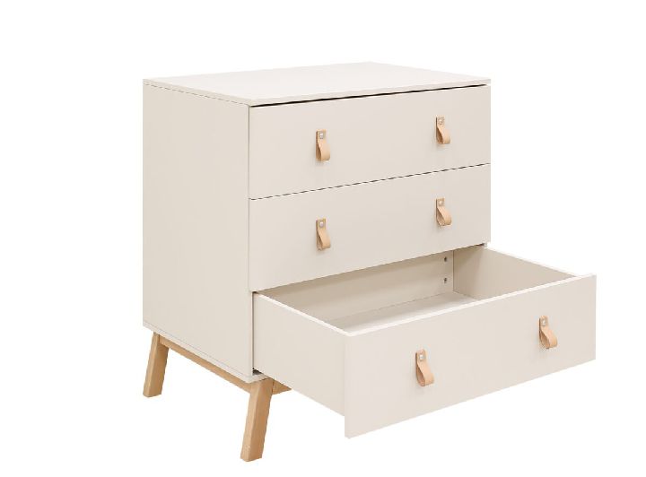 | · Deze serie kenmerkt zich door: | De dekkende kleur dune (denk aan een zonovergoten zandstrand), natuurlijk beuken en naturel leer (handgrepen). Subtiele, horizontale groeven op deuren en op hoofd- en voeteneinde babybedden. |
